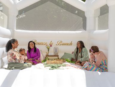 Bounce to Brunch ™ lounges and professional childcare setups that bring style and peace of mind to weddings, showers, and celebrations.